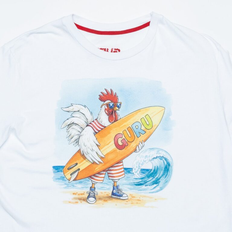 Pura e grafica, la versione Bianco Ottico è la tela perfetta per la stampa più surreale della linea: un gallo