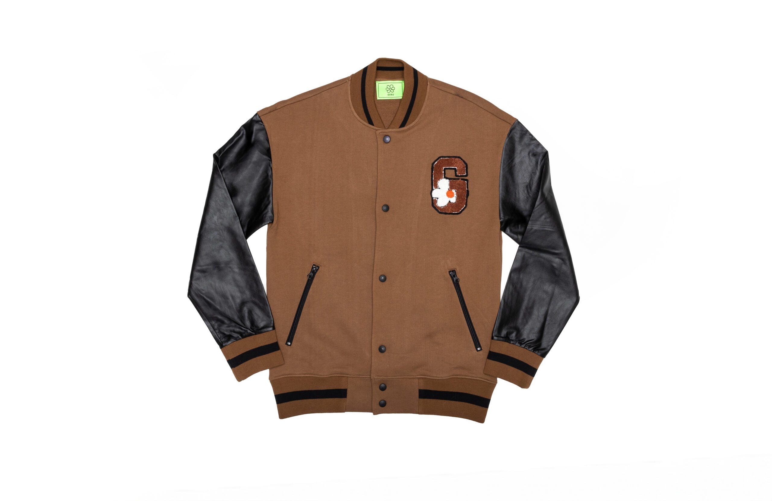 College men’s sweatshirt with faux leather sleeves