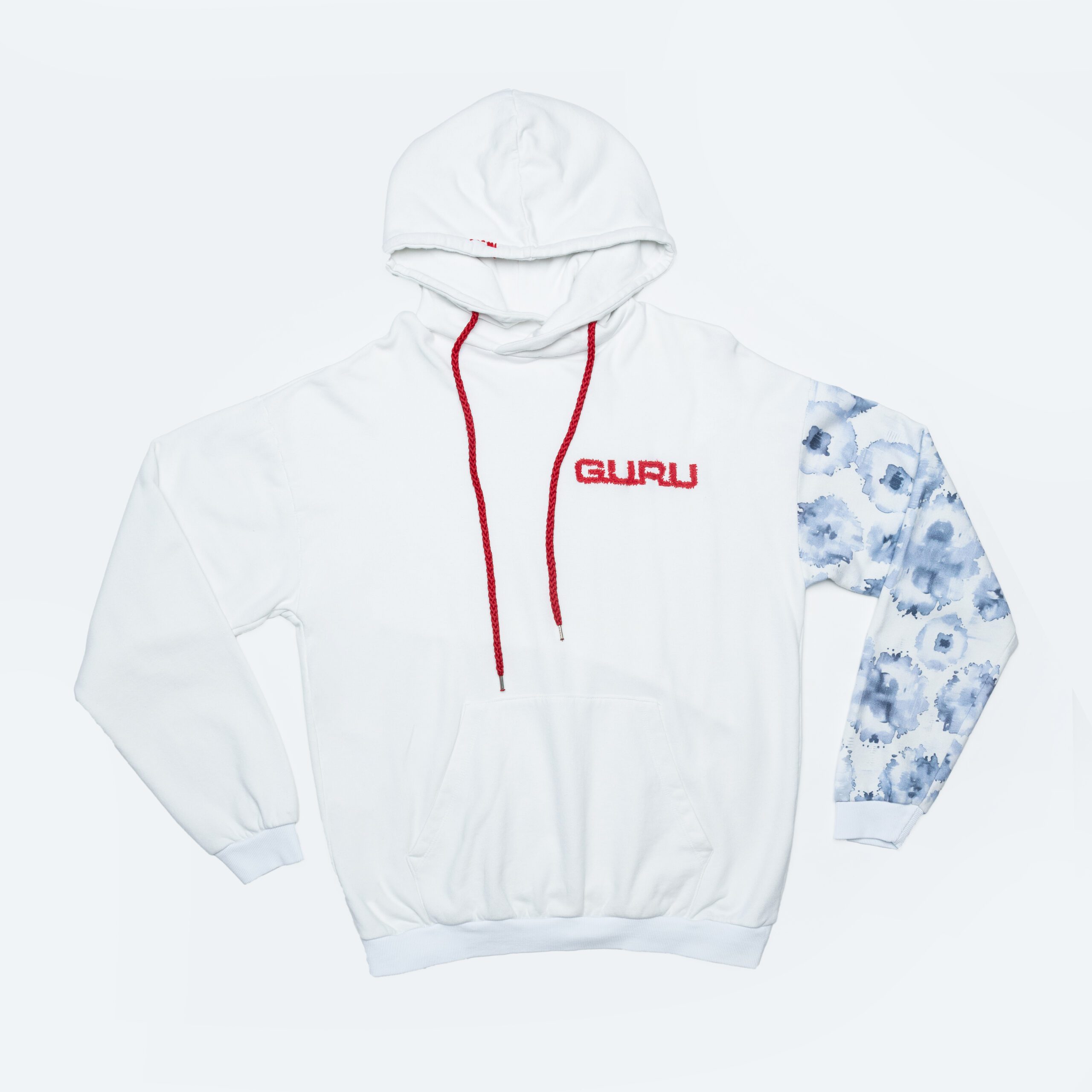 Lively, gritty and richly detailed: the Bloom Collection Hoodie is made of plush with all-over digital printing and direct-dye treatment for a rich, textured visual effect. Ray Flower and optical white shades give freshness and character. The 15 cm GURU maxi embroidery on the chest complements the “Daisy” screen print, creating a distinctive graphic mix. The hood has a red cotton round drawstring, while the ingrown buttons complete the garment with a functional note. Streetwear with a sunny spirit, perfect for the most dynamic days.
