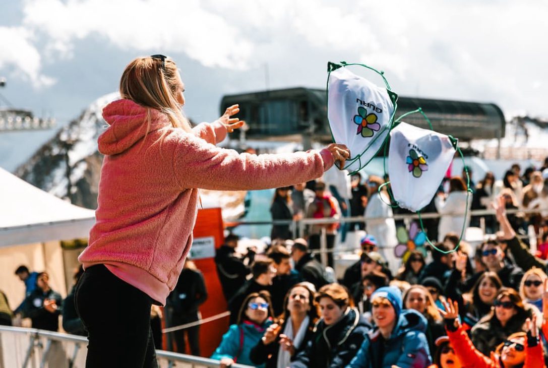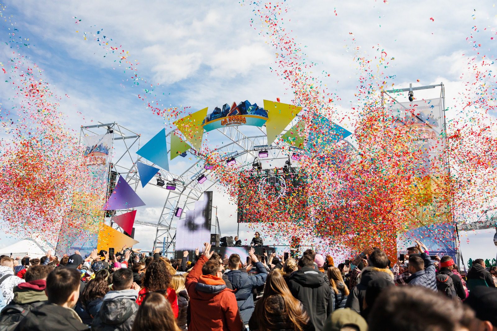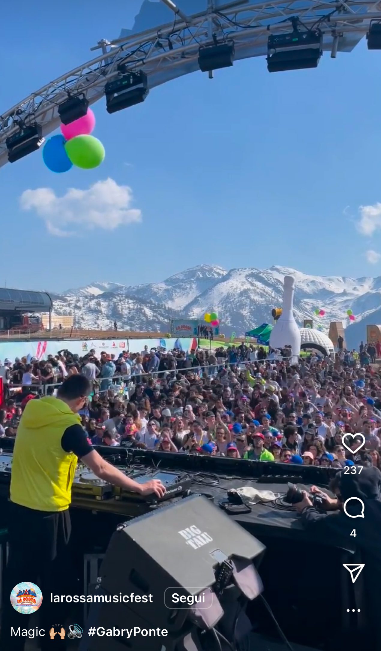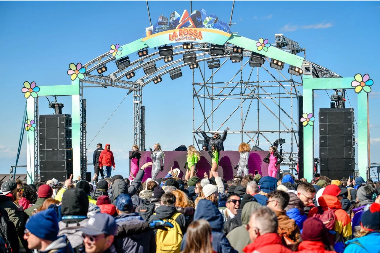 Raggiungere l’area evento a bordo della telecabina La Rossa Panoramica è stato parte dell’esperienza: un viaggio sospeso tra le montagne, con una vista a 360° sulle vette alpine. In cima, lo spettacolo: un palco circondato dalla neve, un pubblico coinvolto e l’energia di un evento che ha ridefinito il concetto di party in quota.