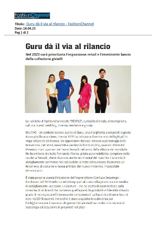 È stata proprio questa l’intuizione dell’imprenditore Gianluca Sessarego – fondatore nel 2014 della società Ghep – a riconoscere nell’identità visiva di Guru un potenziale ancora attuale. Dopo averne ottenuto la sublicenza, Ghep ha acquisito completamente il marchio nel 2021.