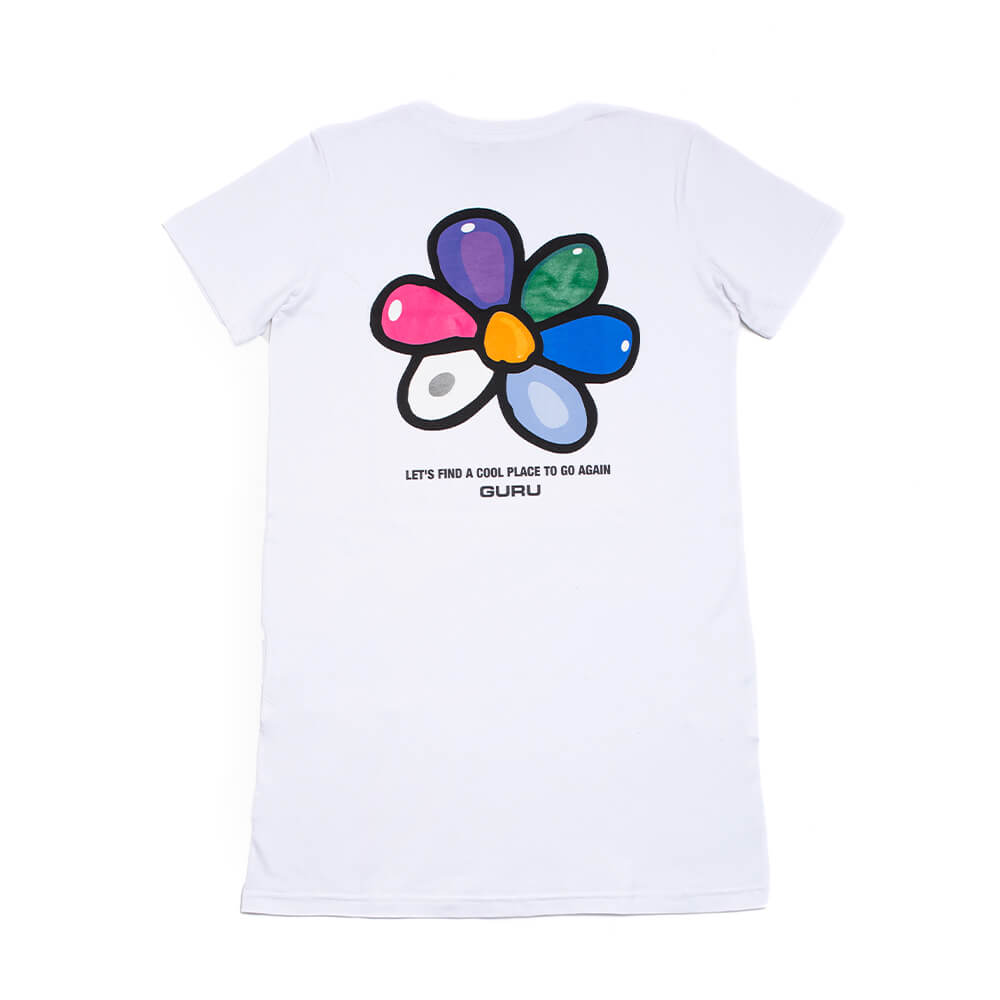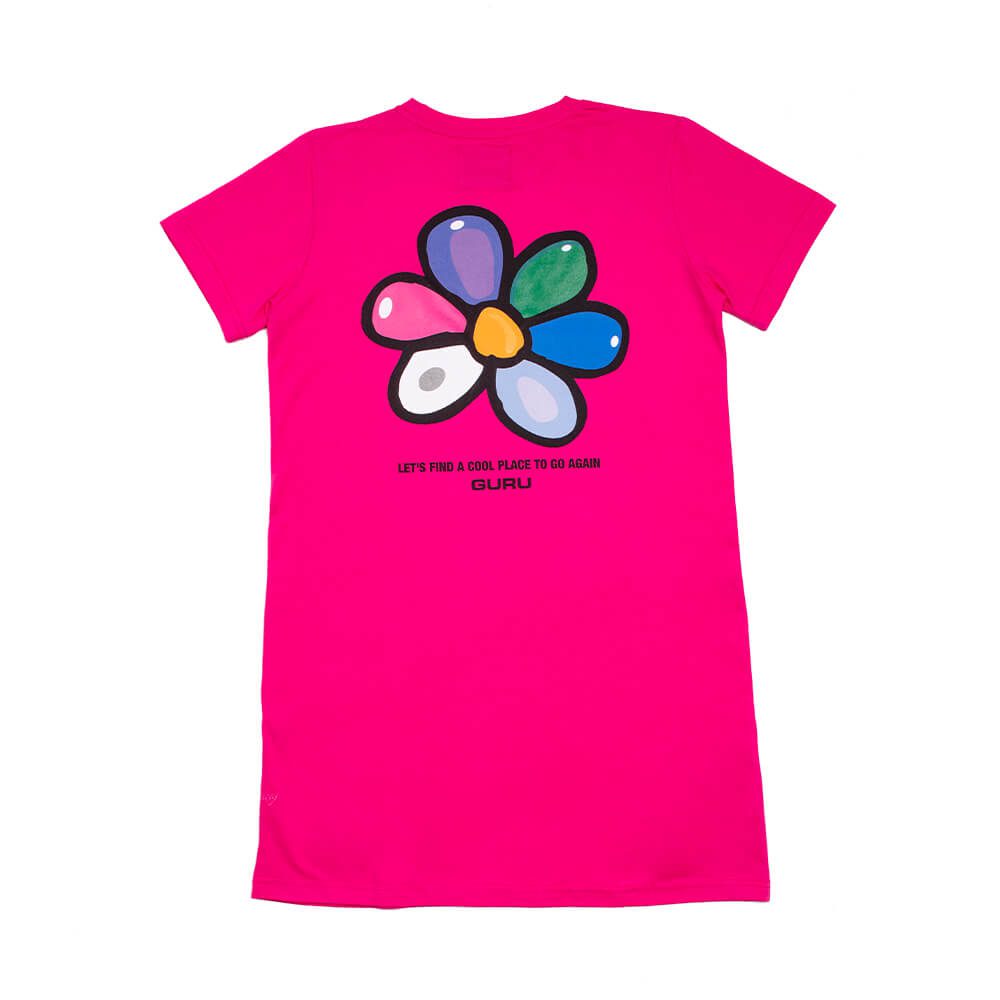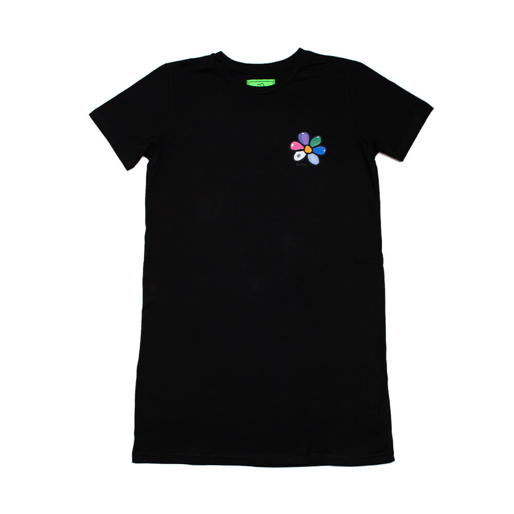 Vestito corto in tessuto leggero di puro cotone con maniche corte e scollo rotondo, con il logo stampato colorato sul lato cuore e sul retro.
