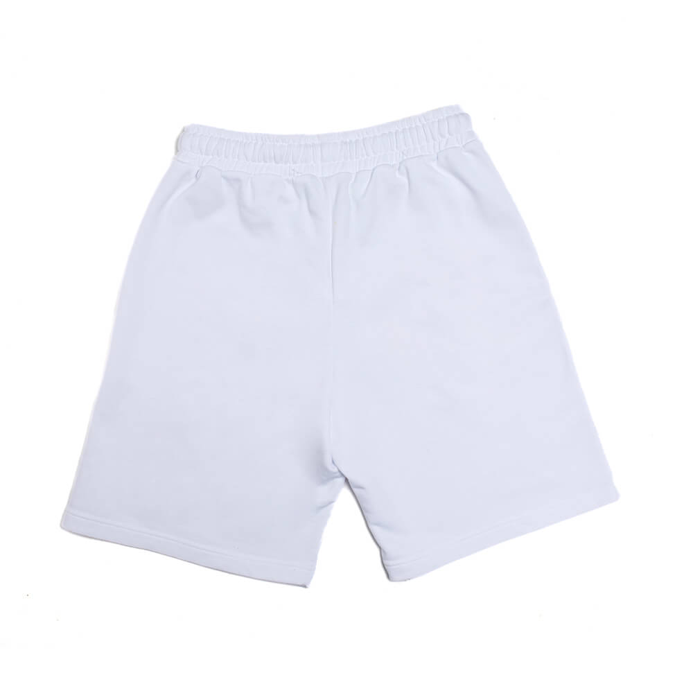 Pantaloni corti in felpa di puro cotone dal peso leggero. Massima praticità: vita con elastico interno e coulisse, tasche davanti, con stampa logo tono su tono, sul fondo dello short.