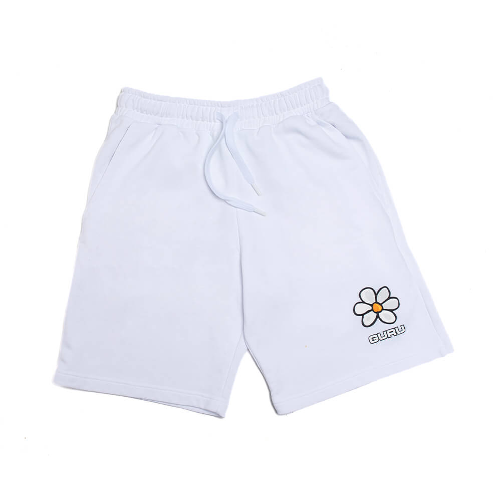 FELPA UOMO SCHIZZI CON CAPPUCCIO, TASCA MARSUPIO STAMPA GURU TRANSFER BIANCA E LOGO MARGHERITA SULLA SCHIENA. 100% COTONE