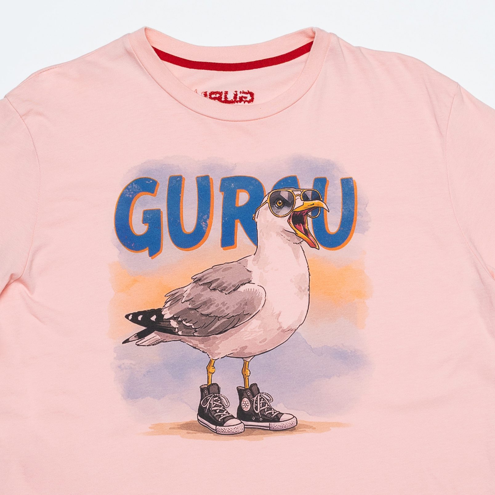Audace e contemporanea, la variante Transcendent Pink porta un tocco inaspettato e deciso nella collezione. La stampa screaming seagull è simbolo di una libertà sfacciata e rumorosa, perfettamente in linea con lo spirito Seaside Rebels. Completano il design il jersey tinto diretto, il ricamo GURU e i dettagli di finitura che elevano il capo.