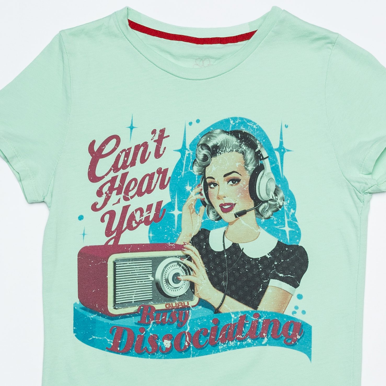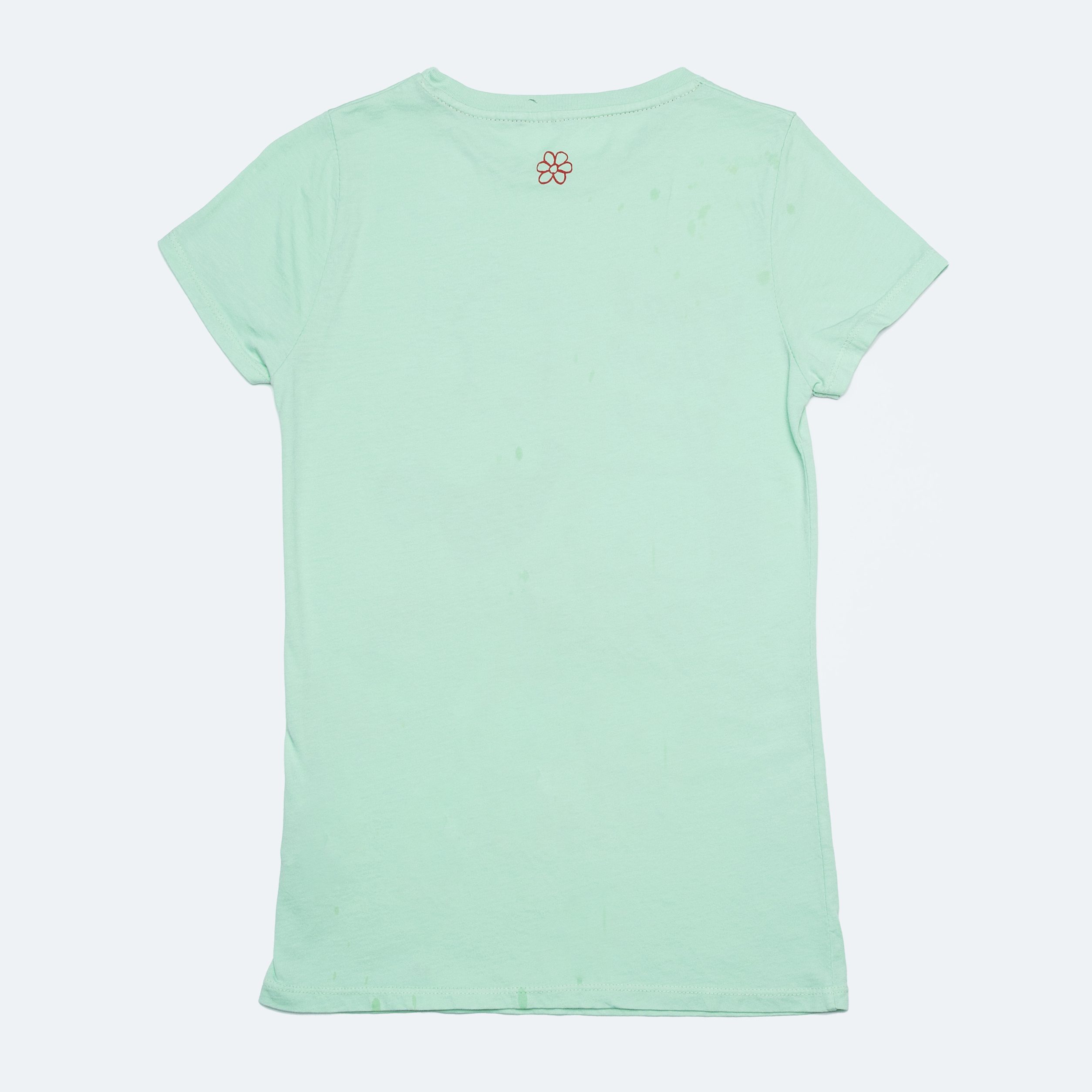 In questa versione Aquatic Awe, il verde tenue incontra l’ironia tagliente: la stampa ritrae una ragazza assorta, come sospesa tra i pensieri, perfetta rappresentazione di chi ha deciso di prendersi una pausa dal mondo. Il jersey tinto diretto regala comfort e leggerezza, mentre la serigrafia “Daisy” e i dettagli rifiniti a costina completano un capo tanto sarcastico quanto irresistibile.