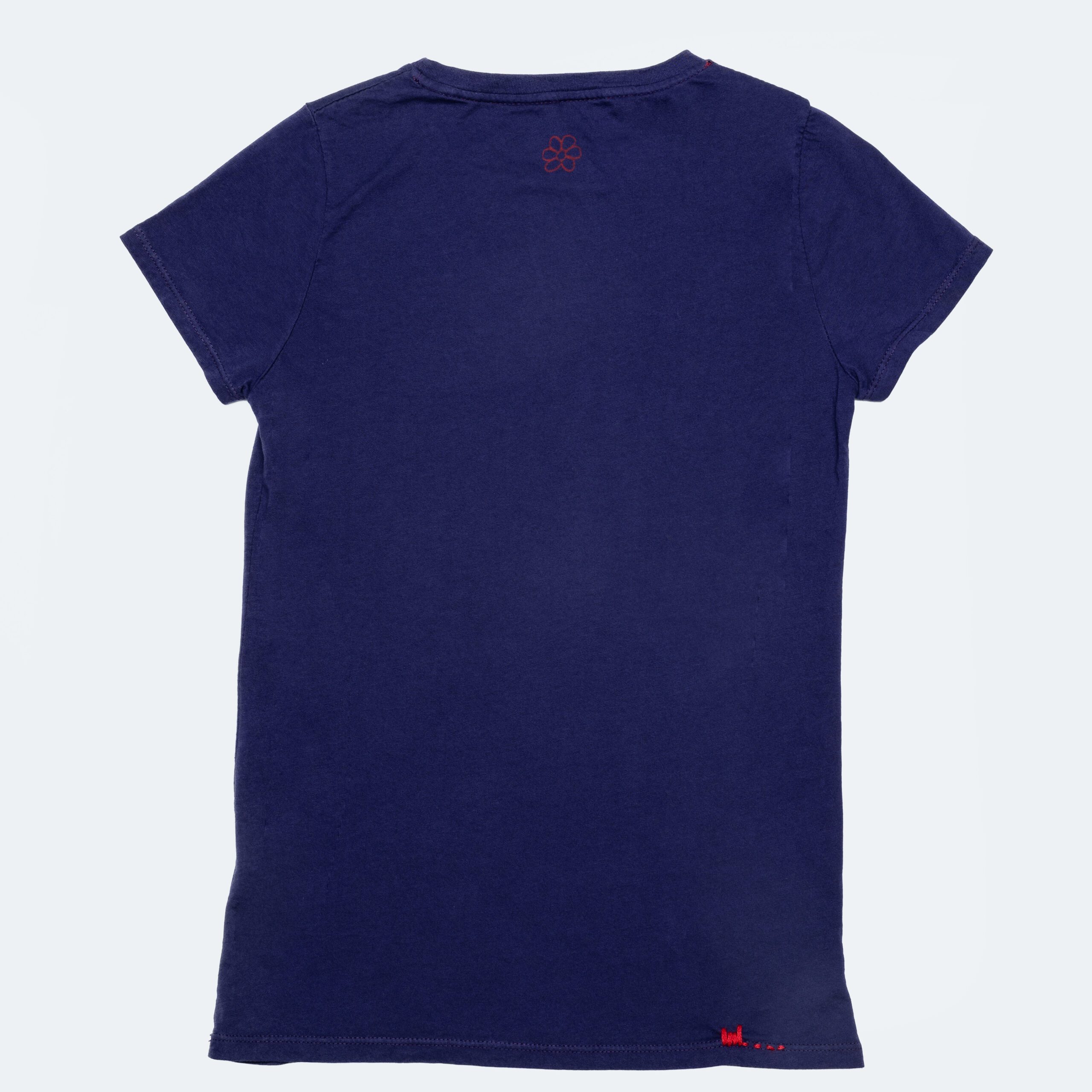 In un intenso blu violato, questa T-shirt è dedicata a chi ha bisogno solo di buone vibrazioni. Una ragazza in piena modalità zen. Il messaggio è chiaro: conversazioni inutili, oggi no. Jersey, tinta diretta, costina e il tocco distintivo della “Daisy” serigrafata chiudono il look in puro stile Femme Fatale.